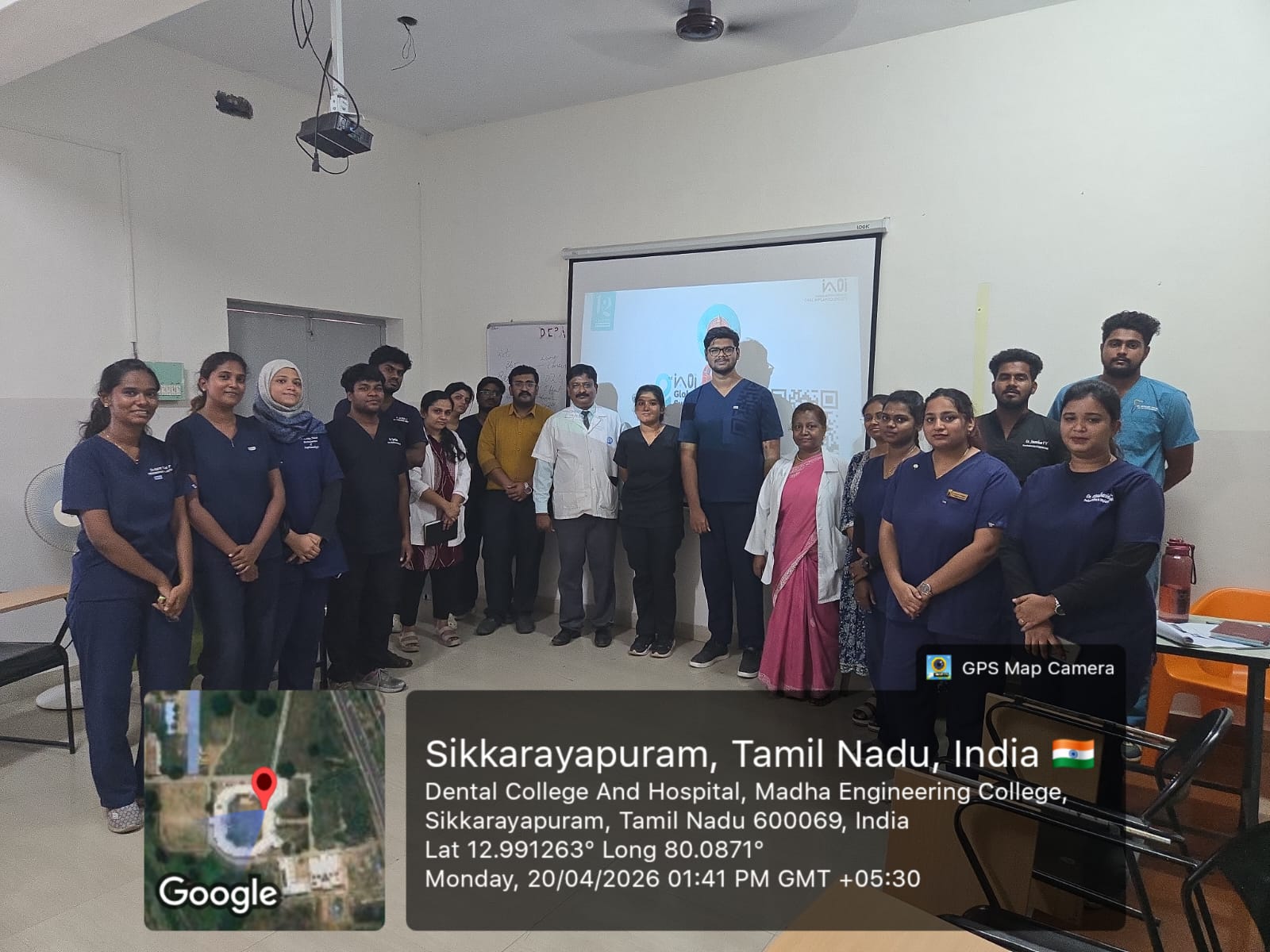 Osseointegration Day at Madha Dental College & Hospital was marked by an interdepartmental PG quiz hosted by Periodontics, Prosthodontics & Oral Surgery in association with IAOI. Guided by esteemed HODs, the event saw enthusiastic participation and strong academic spirit. Winners: Dr. Geethanjali & Dr. Kavin (PG – Periodontics) | Runners-up: Dr. Mohamed Fadhel & Dr. Ananthan V.V (PG – Prosthodontics). A successful initiative promoting learning, collaboration & excellence in implant dentistry.
